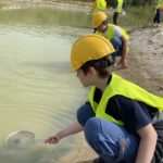 Die Zebrakinder wanderten zu den Quarzwerken in Buschbell. Hier wurden sie mit Helm und Weste zu „NaSa Forschern“ (Natur und Sand) und lernten beim Keschern einige Teichbewohner kennen und im Sand wurden viele schöne Steine entdeckt. Die Kinder sagen Dankeschön an Frau Susanne Kirsch vom NaSa Projekt der Quarzwerke Frechen.